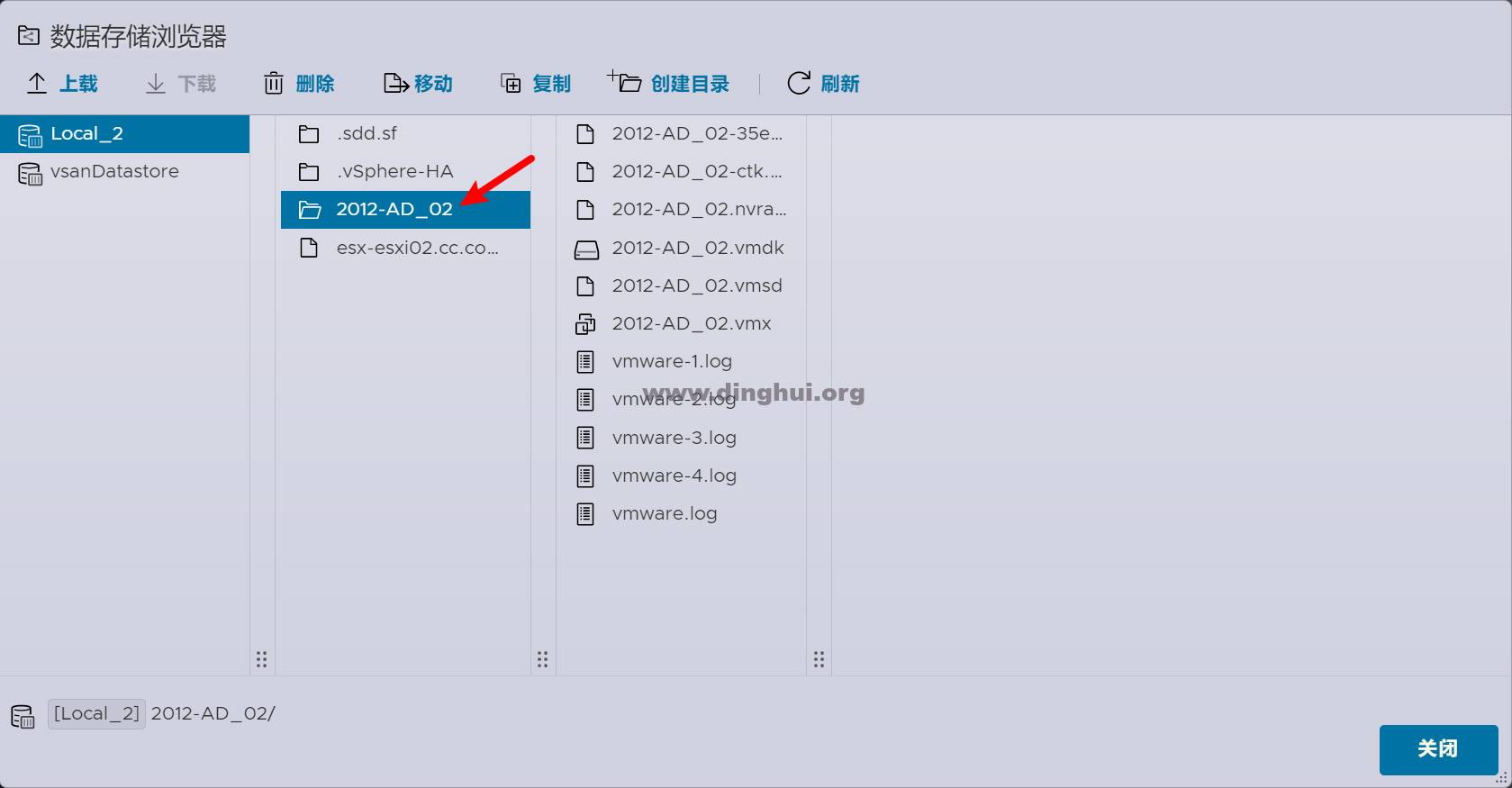 计划将源主机Local_2存储上的2012-AD_02文件夹,拷贝到目标主机存储上