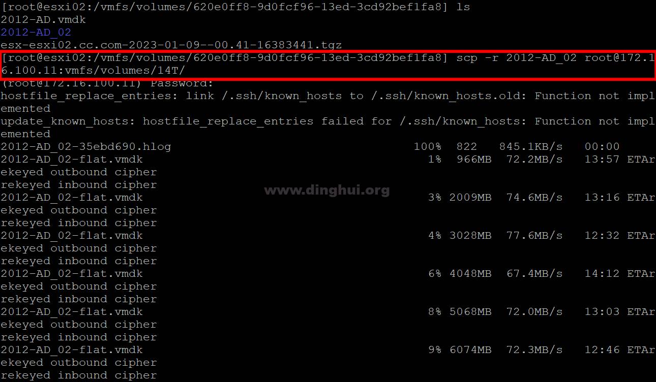2.不用vcerter, 直接使用Esxi cli 使用linux SCP 命令进行ESXI 主机之间数据传输。