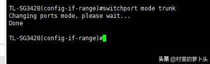 4. 在接口模式下输入"switchport mode trunk ",把交换机19-22端口设置为trunk类型