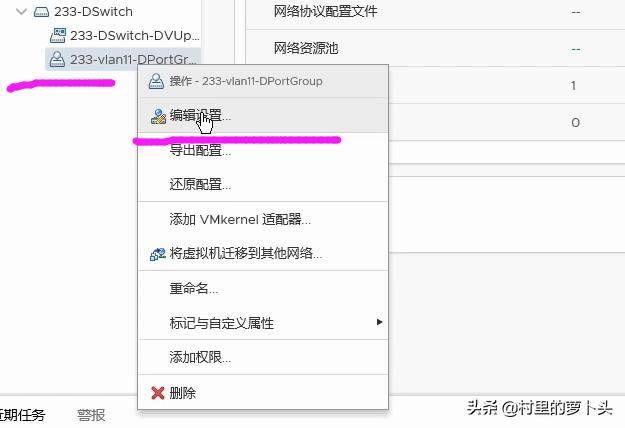 15.在回到 233-vlan11-DPortGroup 的分布端口组这边,选择编辑设备。