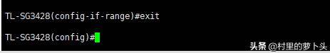 TL-SG3428(config)#interface range gigabitEthernet 1/0/19-22