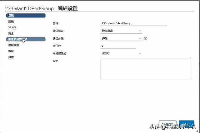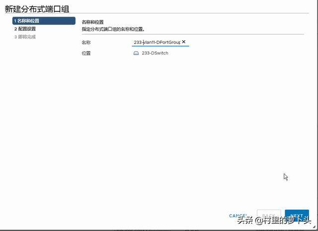 9.在名称和位置里 选择名称修改233-vlan11-DPortGroup 的分布端口组。