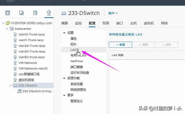 6. 创建完分布式交换机之后,我们到配置里面选择LACP选项。