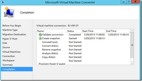 在转换并迁移虚拟机到Hyper-V中,根据源虚拟机大小决定所花费的时间大小,因此在转换并迁移虚拟机到Hyper-V中时,提前规划好时间以执行转换并迁移虚拟机