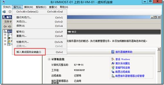 17. MVMC3.0将虚拟机BJ-VM-01转换到Hyper-V平台后并不会安装Hyper-V集成服务,需要您手动安装