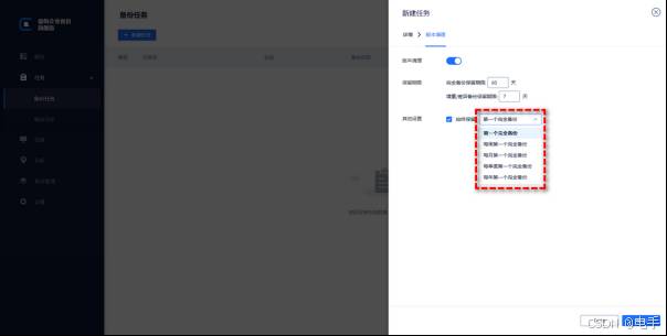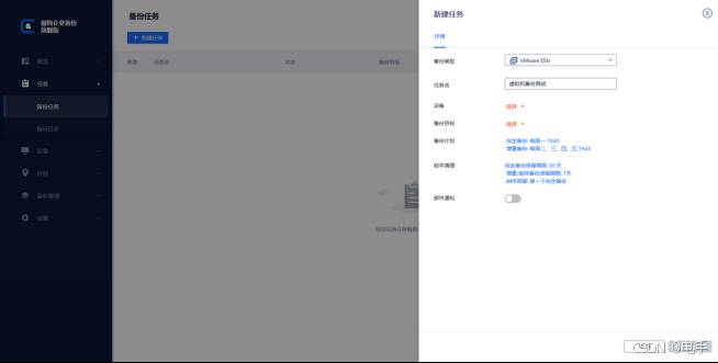 步骤3. 根据您的需求设置备份类型、任务名、设备、备份目标、备份计划、版本清理等。