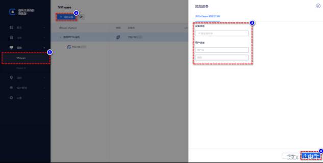 步骤1. 绑定设备:打开傲梅企业备份旗舰版,登录您的账号,在主界面中将您的vCenter或ESXi主机添加为源设备(此步骤仅在初次绑定主机时才需要,绑定成功之后则无需重复此步骤)。