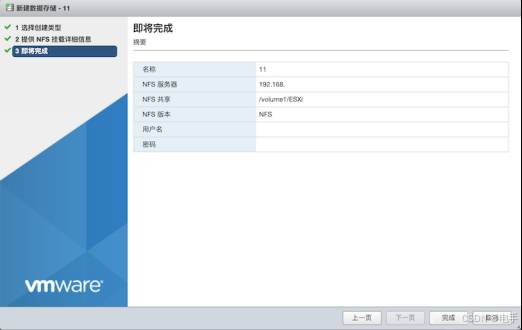 9. 查看设置摘要,然后单击“完成”。刷新数据存储列表,您可以看到NAS已添加为新的数据存储。