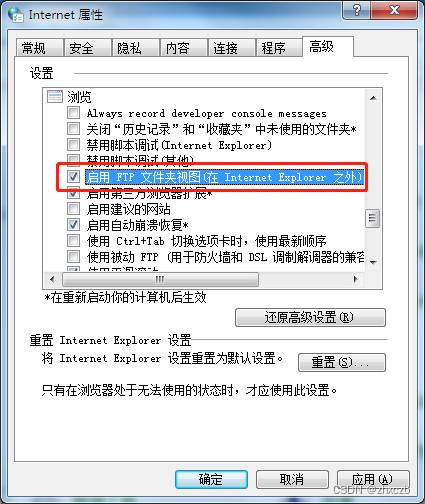 控制面板-internet属性-高级-启用FTP文件夹视图(IE之外)勾选