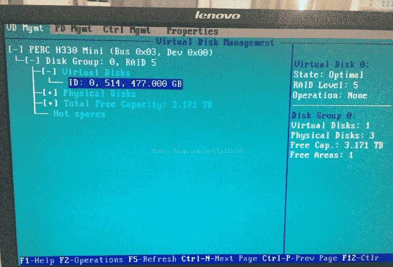 按CTRL+N切换到 PD MGMT菜单,可以看到磁盘的状态为online。