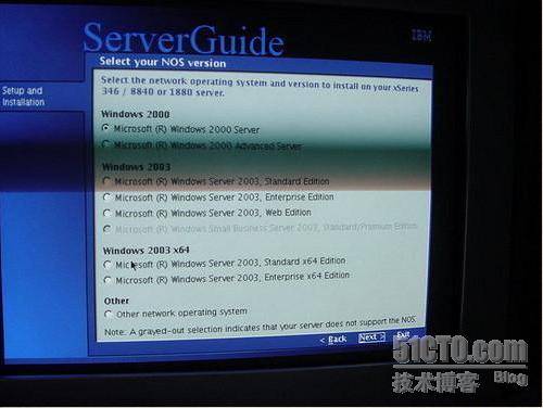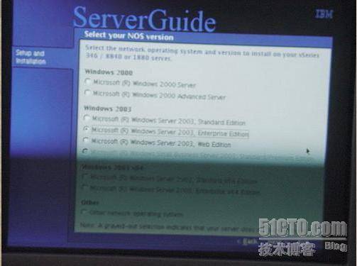 到了这里,要看清楚啦,一定要选对你所要安装的操作系统程序类型,如果安装2000系统,你就选2000的,如果装2003的系统,那你就选2003的,不要乱点啦。