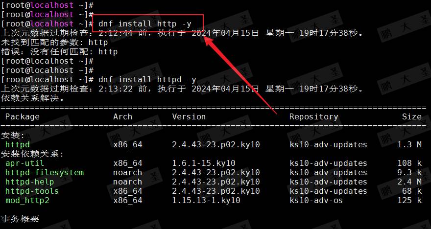 [root@localhost ~]# dnf install httpd -y