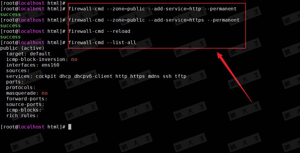 [root@localhost html]# firewall-cmd --zone=public --add-service=https --permanent