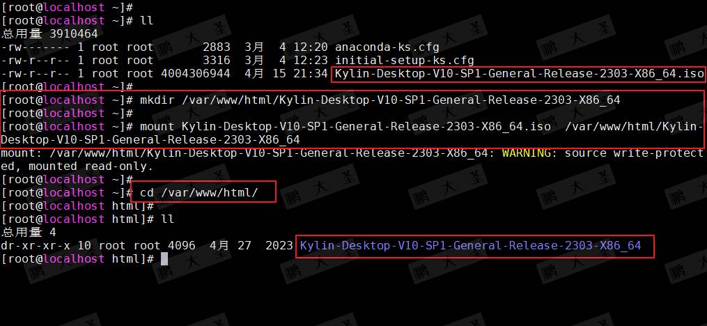 [root@localhost ~]# mkdir /var/www/html/Kylin-Desktop-V10-SP1-General-Release-2303-X86_64