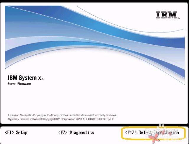 重启服务器,进入如下界面,选F12,进入界面选CD/DVD为第一启动项,等待启动,启动后出现一个提示界面“按任意键。。。。”,按下任意键就OK了,进入安装系统状态