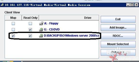 把后缀.iso的操作系统文件加载进来,勾选map和read only,然后点击“mount selected”