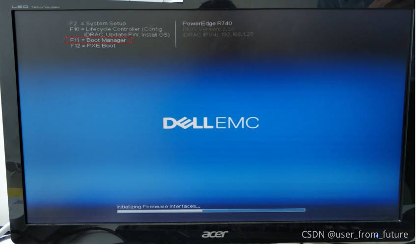 3.在显示界面点击F11进入Boot Manager,出现蓝底则为选中