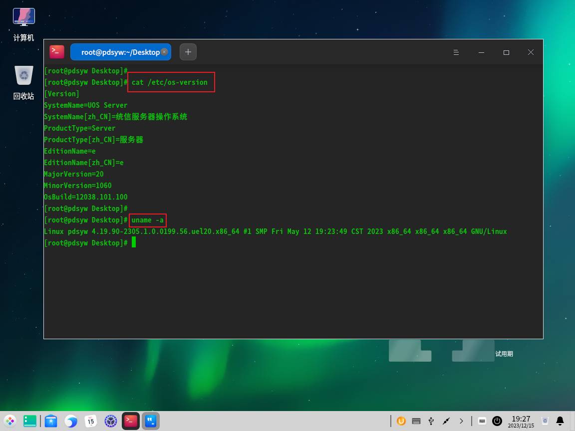 Linux pdsyw 4.19.90-2305.1.0.0199.56.uel20.x86_64 #1 SMP Fri May 12 19:23:49 CST 2023 x86_64 x86_64 x86_64 GNU/Linux
