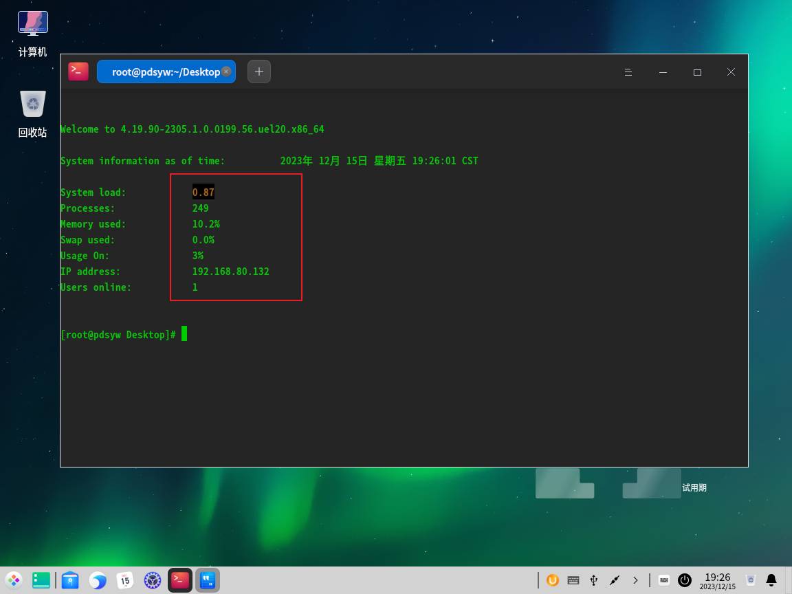 System information as of time: 2023年 12月 15日 星期五 19:26:01 CST