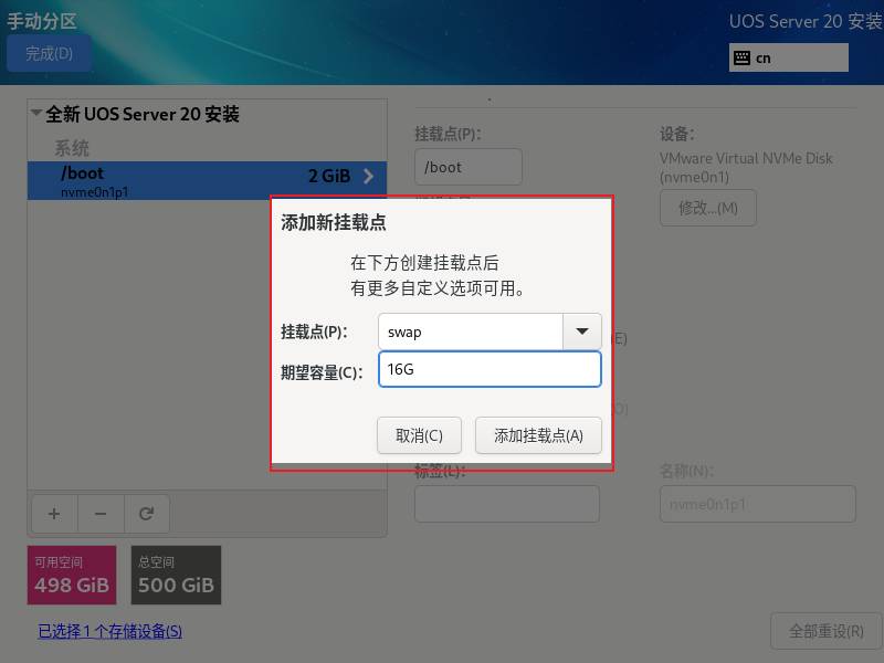 ├─uos-swap 253:1 0 16G 0 lvm [SWAP]