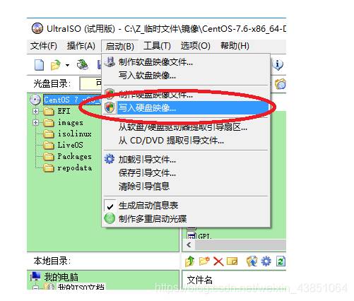 插入U盘,选择 “启动” -> “写入硬盘镜像”,硬盘驱动器选择做为系统盘的U盘,其他选项不需要改动。
