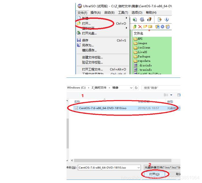 打开UltraISO软件,选择 “文件” -> “打开” 选择linux系统镜像(iso文件)并 “打开”。