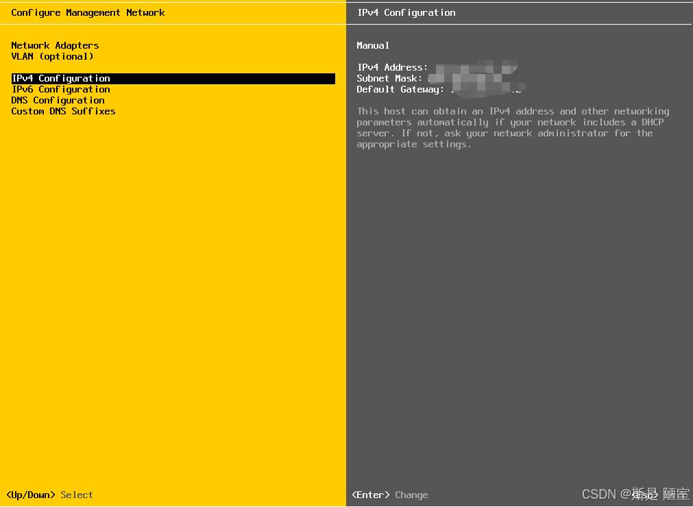 ESXI系统默认为DHCP动态IP,我们需要手动设置静态IP