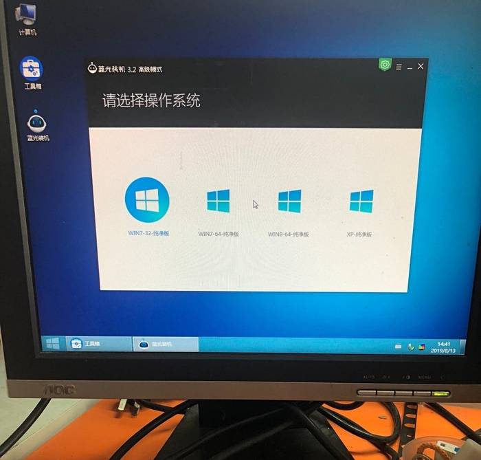 第七步:开始拷贝系统,小编的电脑是选择蓝光装机,然后我们移动鼠标选择Win 7 64