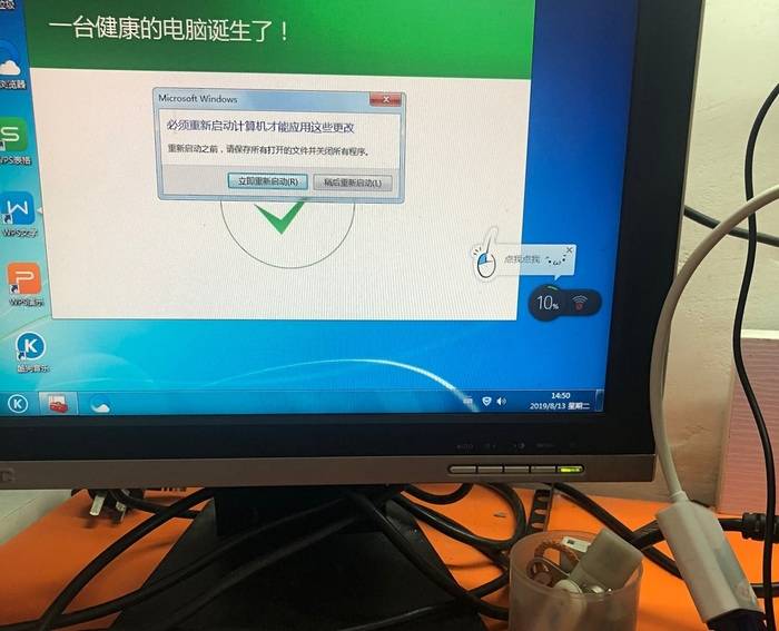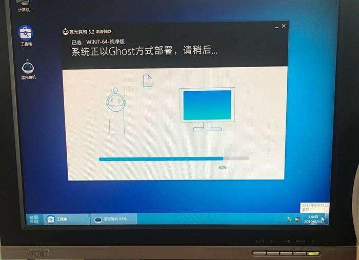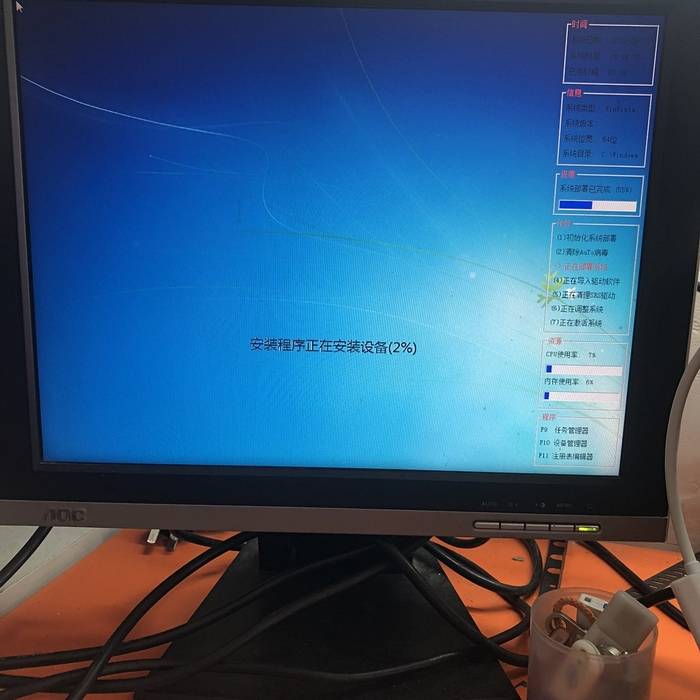 第八步:系统拷贝完了,U盘也拔出来了之后,我么就等着系统解压了,当系统解压完成之后,电脑会自动进入系统画面,小编的电脑系统是解压过程中自动安装驱动,装好之后,电脑会自动提示一台健康的电脑诞生了。