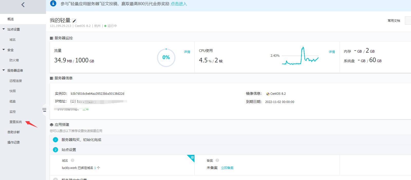 在这次购买服务器的过程中,遇到这样一件事,就是如何重置云服务器系统