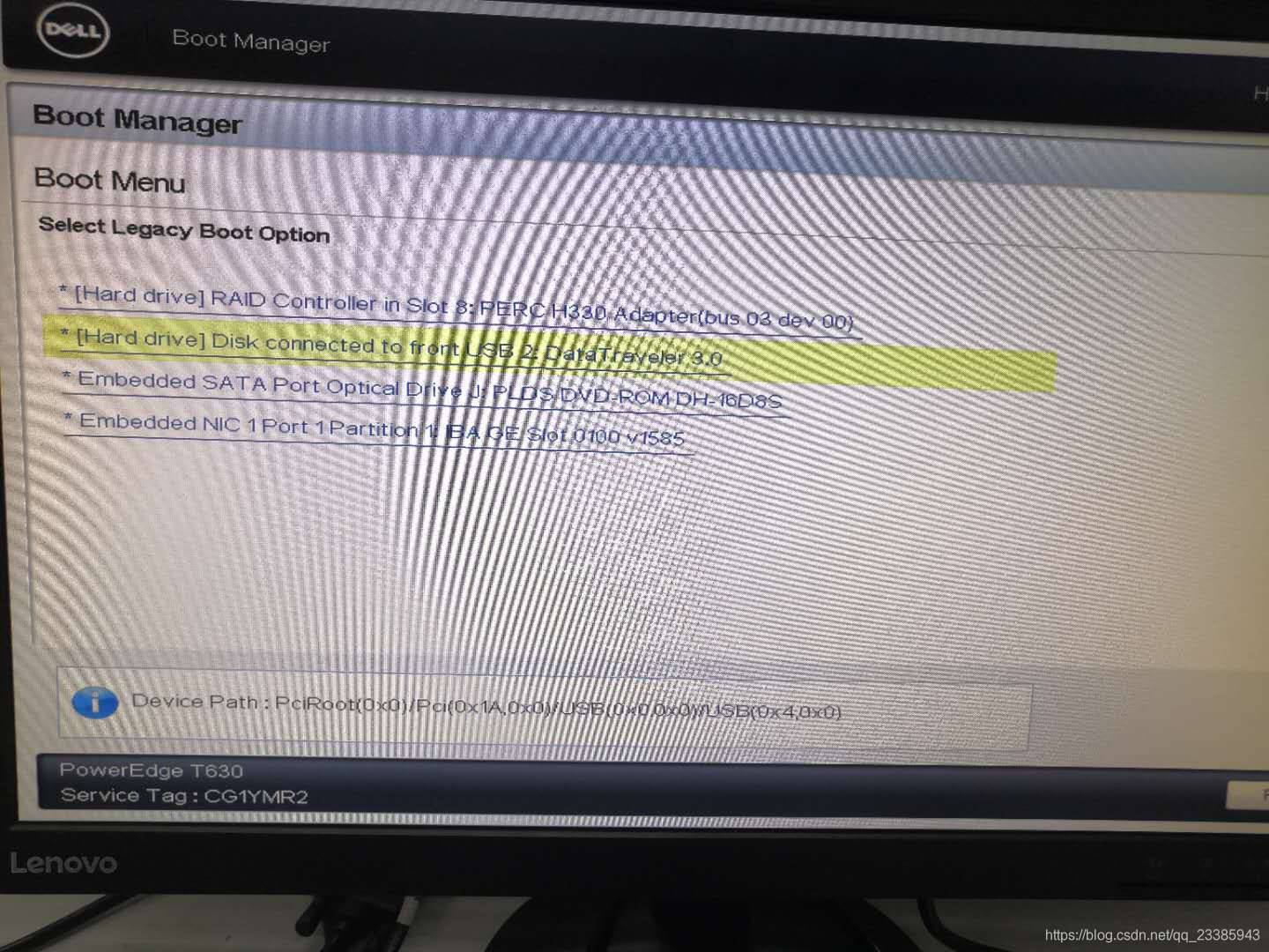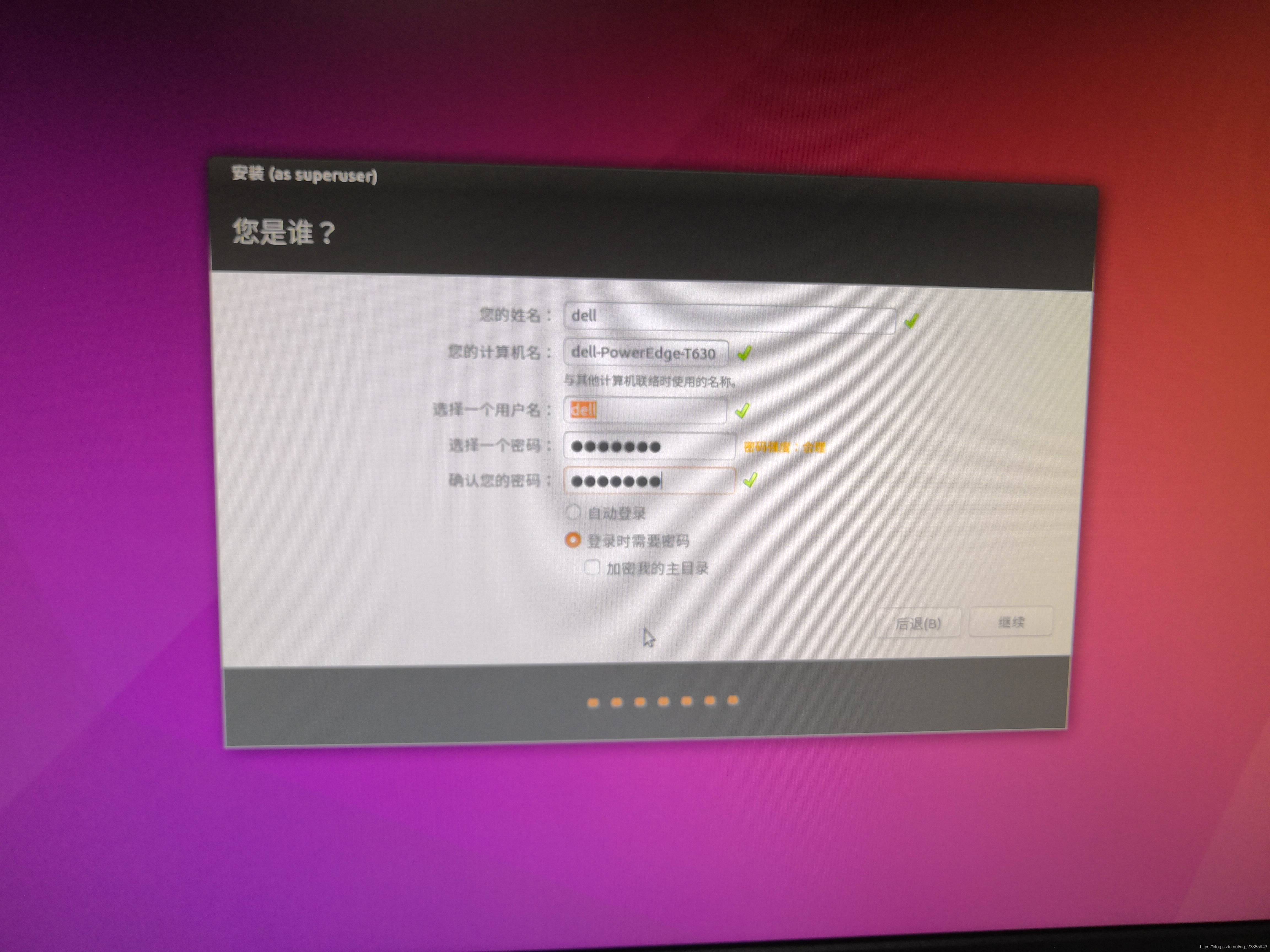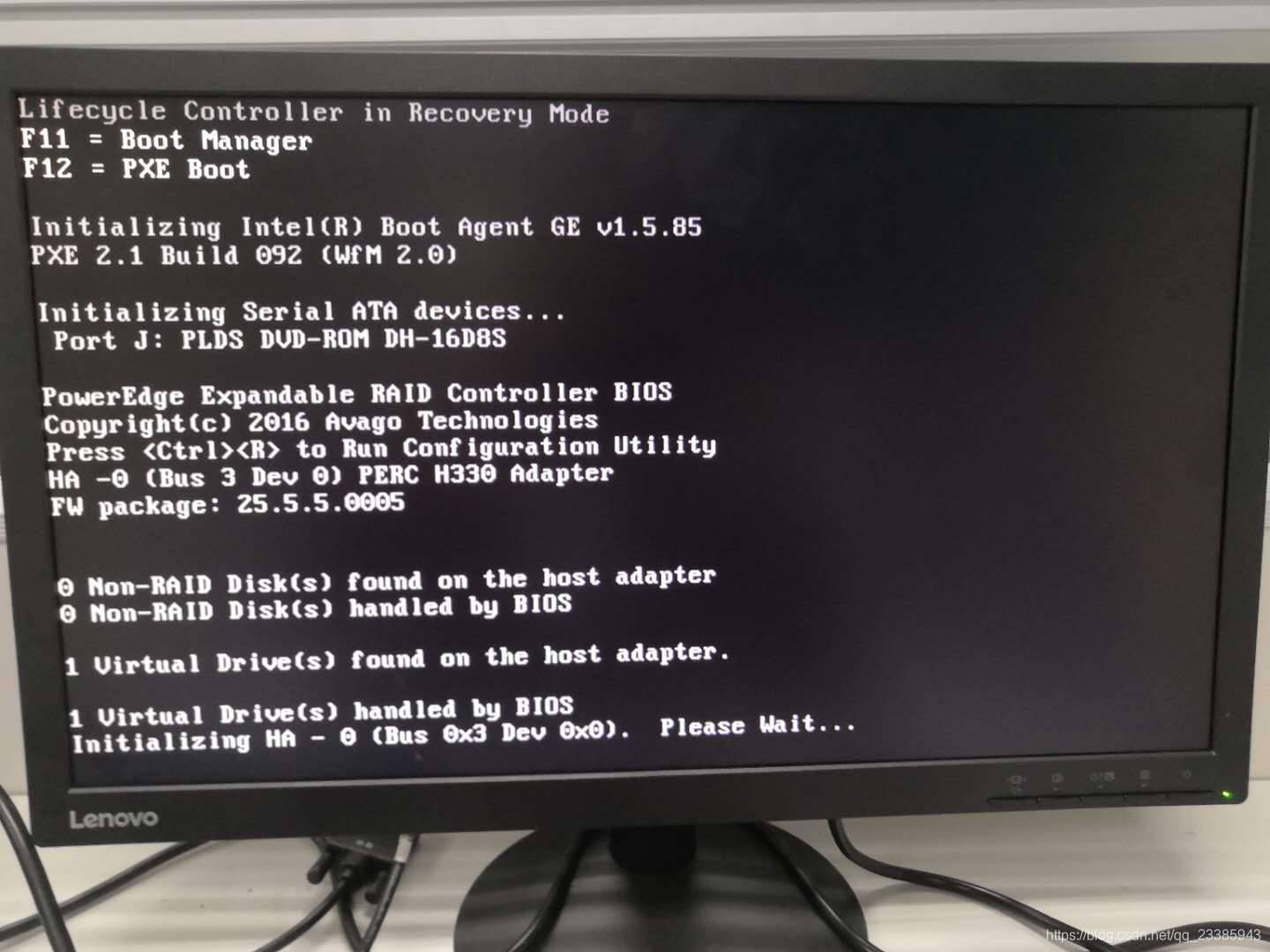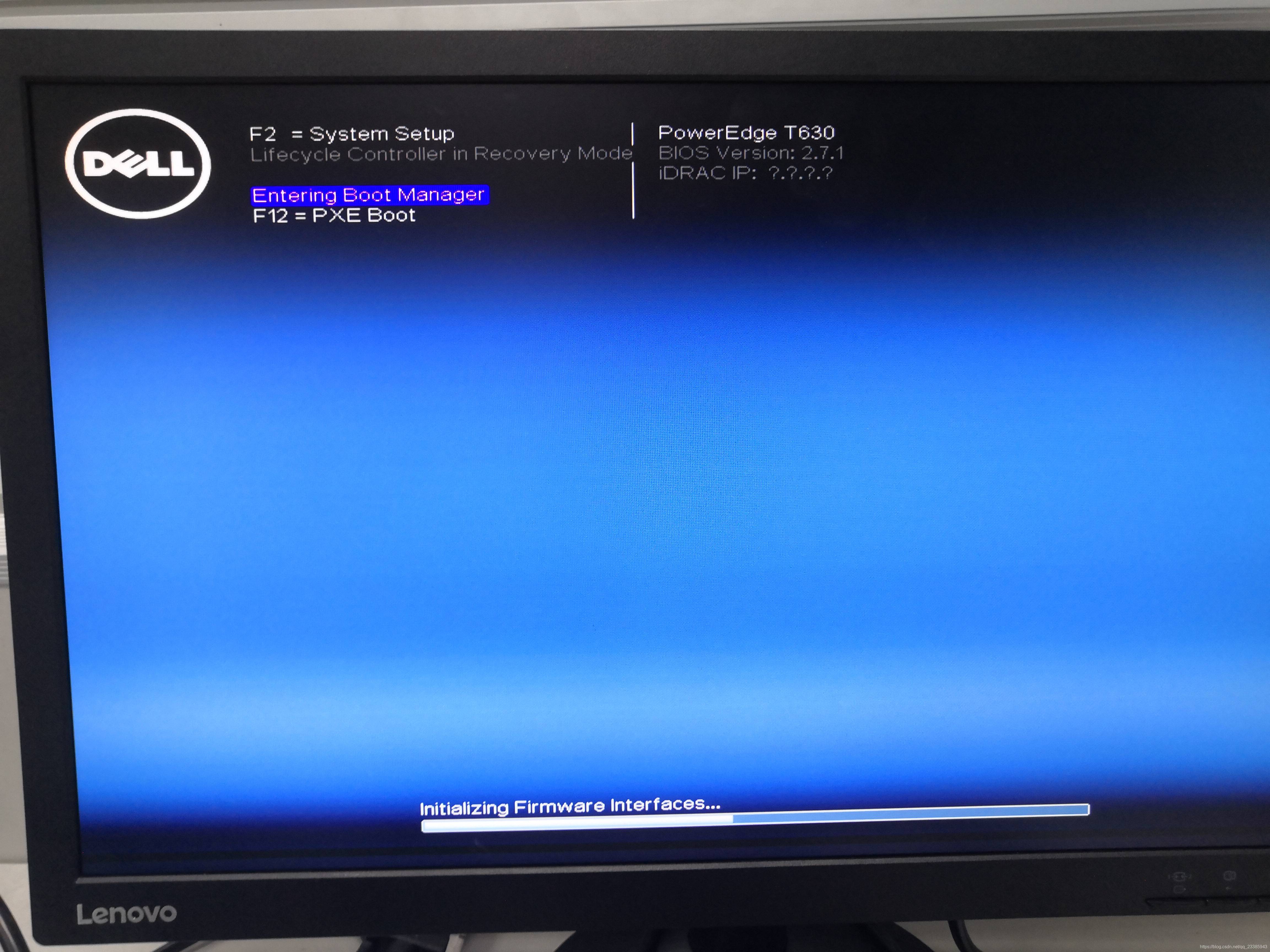 在开始安装之前,我要说明一下,这个Ubuntu16.04.5系统的安装,使用的连接线(就是服务器和电脑显示器的连接线)必须两头都是VGA连接线,不能使用VGA转HDMI连接线,也不能用DVI转DP连接线(戴尔PowerEdge T630服务器有一个VGA接口,一个HDMI接口,三个DP接口)。以下安装成功之后,使用的是VGA通用集显,使用不了独显,需要使用的独显的话,需要改一下BIOS,安装显卡驱动以及把VGA连接线换为VGA转HDMI连接线或者DVI转DP连接线,才能使用独显。