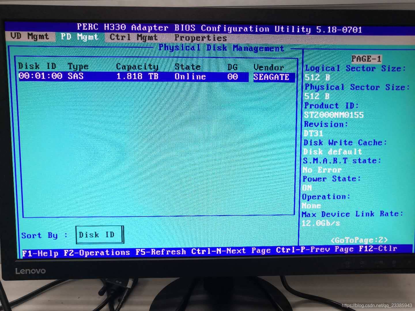 4.按CTRL+N切换到 PD MGMT菜单,可以看到磁盘的状态。按Esc键退出重启就行了;