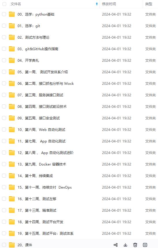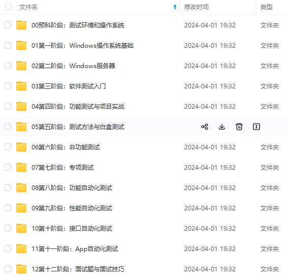 既有适合小白学习的零基础资料,也有适合3年以上经验的小伙伴深入学习提升的进阶课程,涵盖了95%以上软件测试知识点,真正体系化!