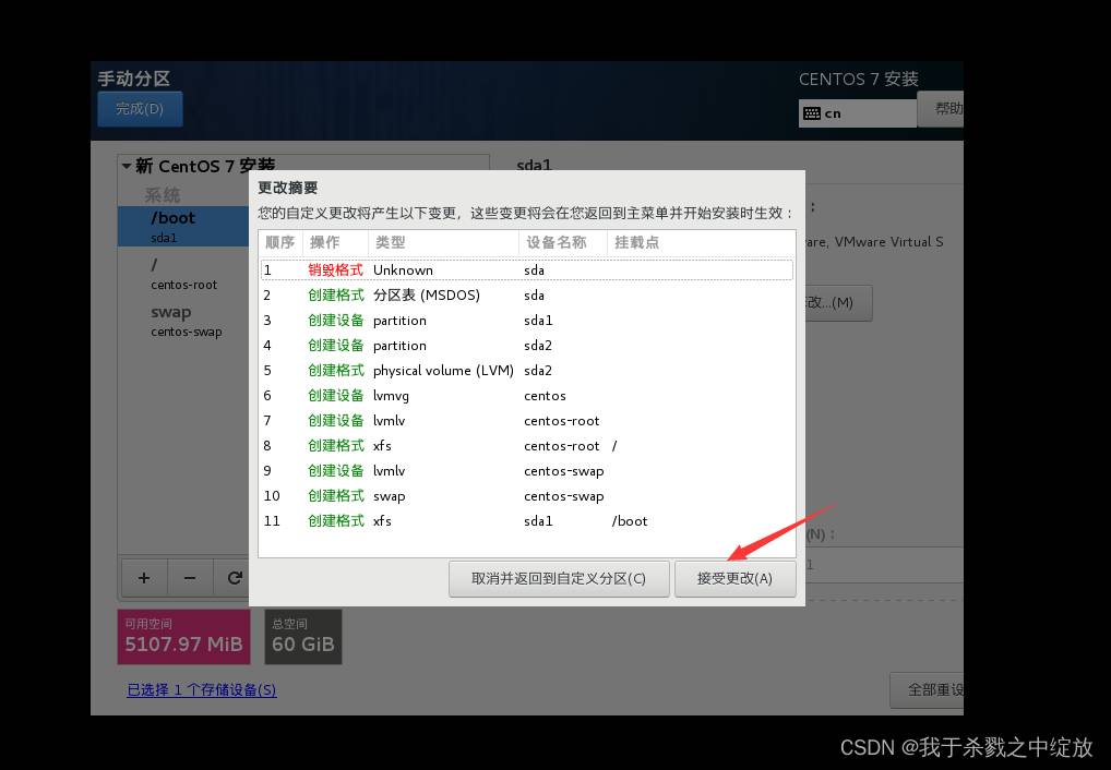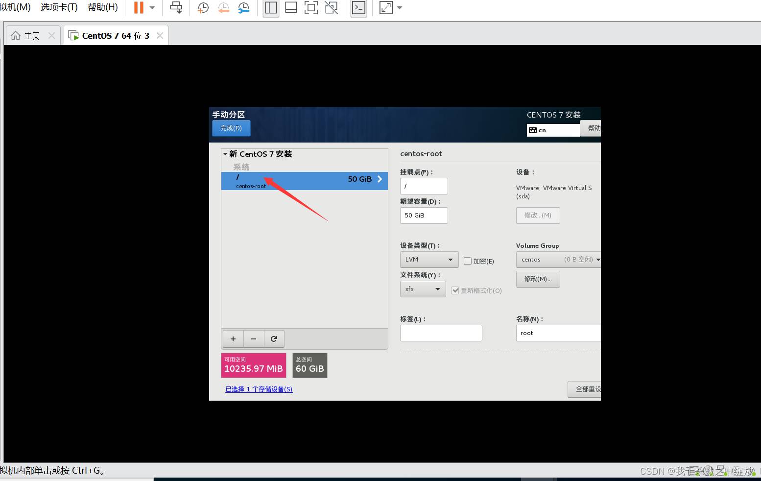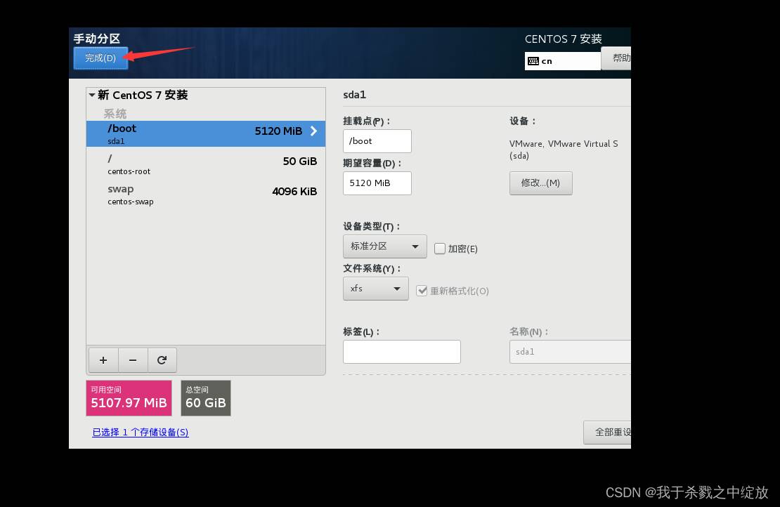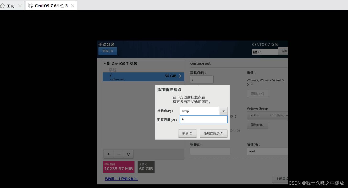 17:三个区分别设置为/50个g,swap 4个g运行内存,/boot5个g。