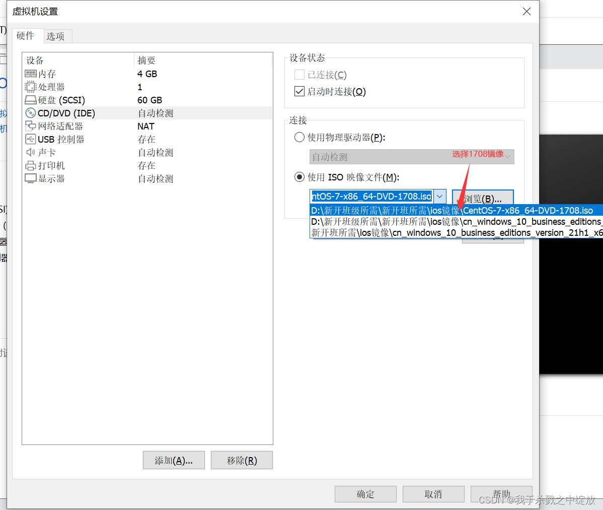 10:选择所需要的镜像centos-7-86x 64-dvd-1708