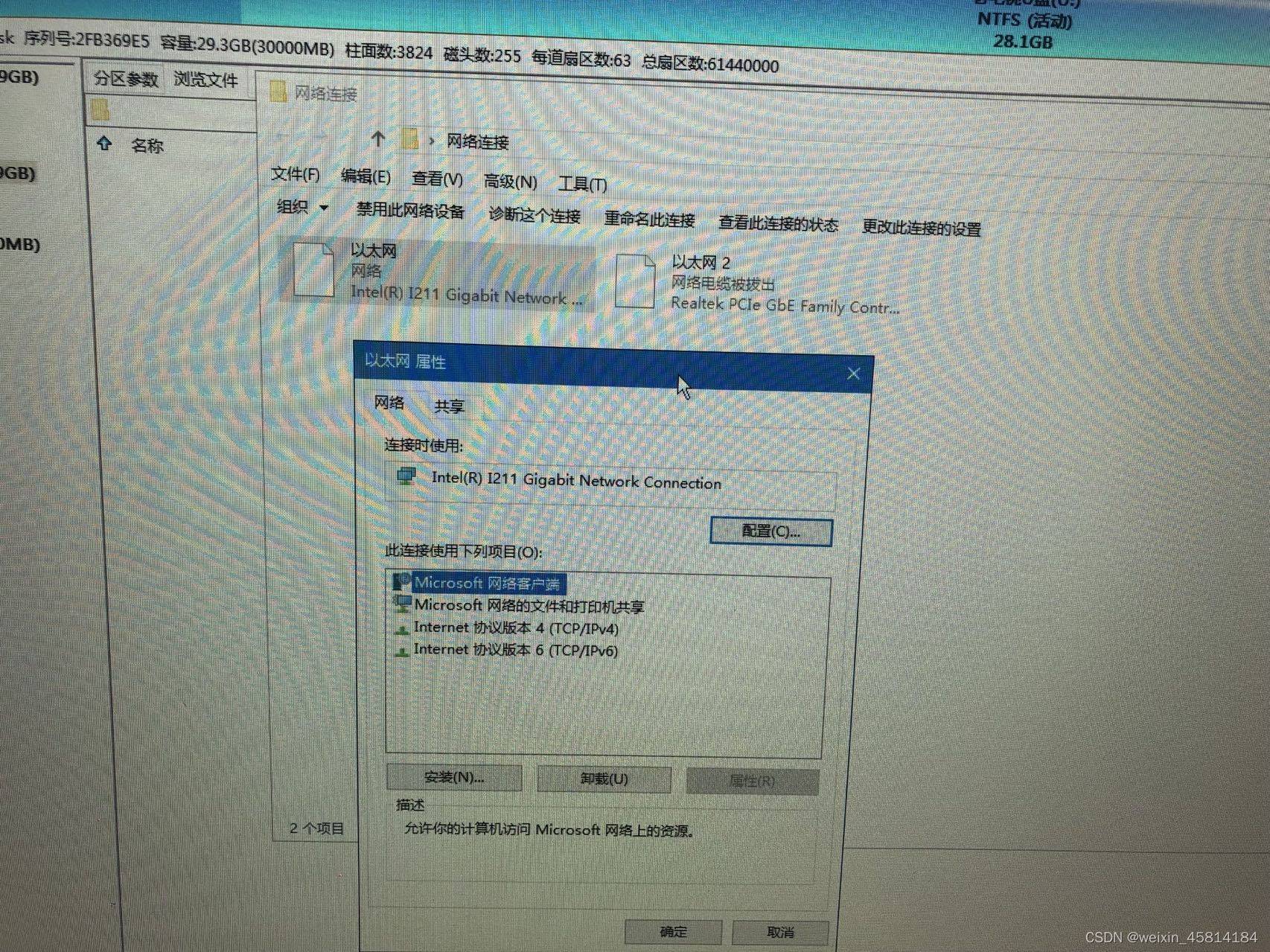 借助U盘启动盘登录PE,发现网卡驱动可以自动正常安装,双网口皆正常,点开网络属性,查看网卡信息,发现一个是Intel(R)I211 Gigabit Newwork Connection