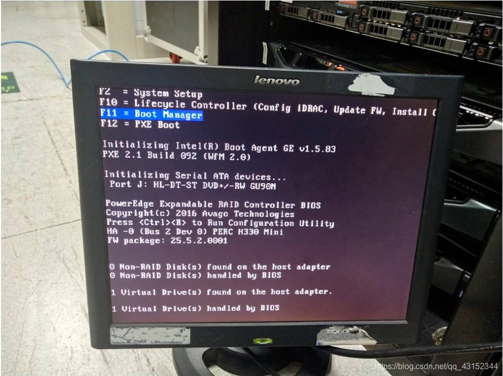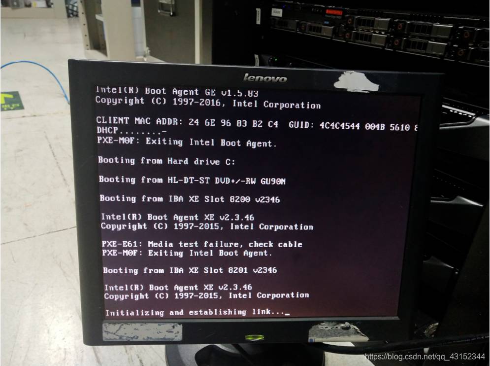 因为安装操作系统PXE服务器是已经配置好的,所以我们不需要管,现在就是准备要安装的两台服务器就好了,一开始我还觉得挺简单的,因为预先在自己的虚机上搭建了一个PXE服务器,然后又启动了一个虚机来进行安装操作系统是很顺利的,结果到了服务器上那就考虑的问题有点多了。
