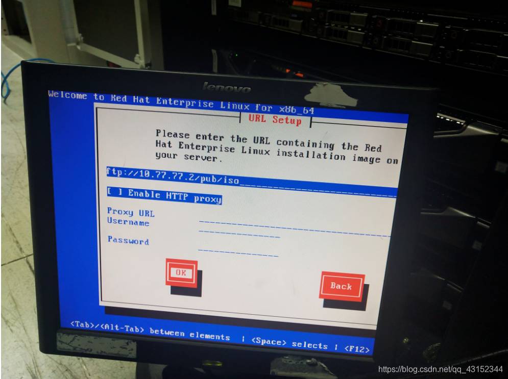 这里选择安装介质的时候要选择URL,然后这里填写在PXE服务器上面部署的FTP的地址,