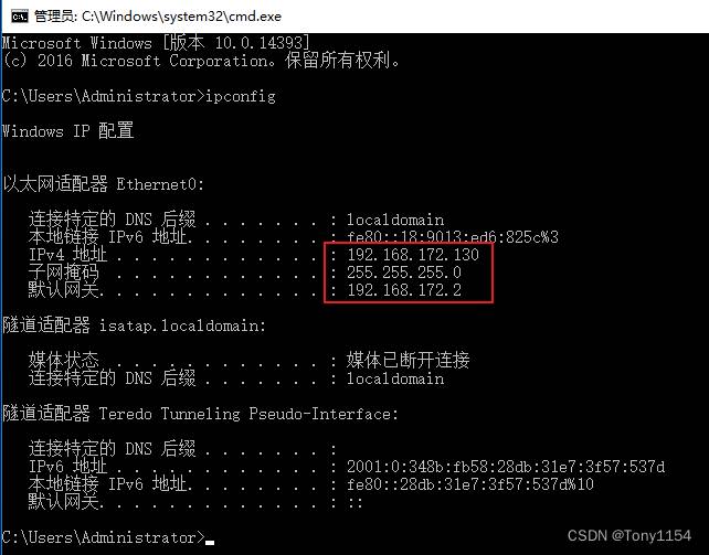 先看一下DHCP分配的ip地址,记录下,后面手动设置为此ip