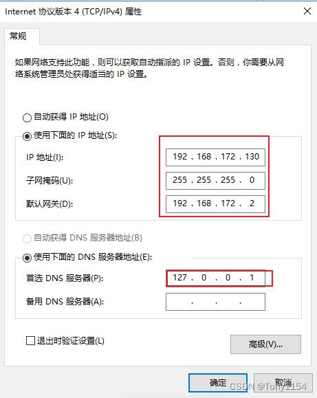 手动设置ip,DNS设置为和网关一样的192.168.172.2(和下面图不一致,请更改一下)