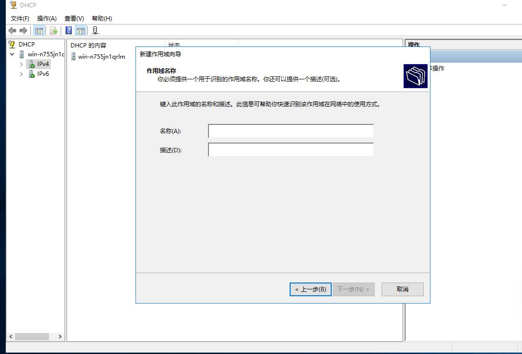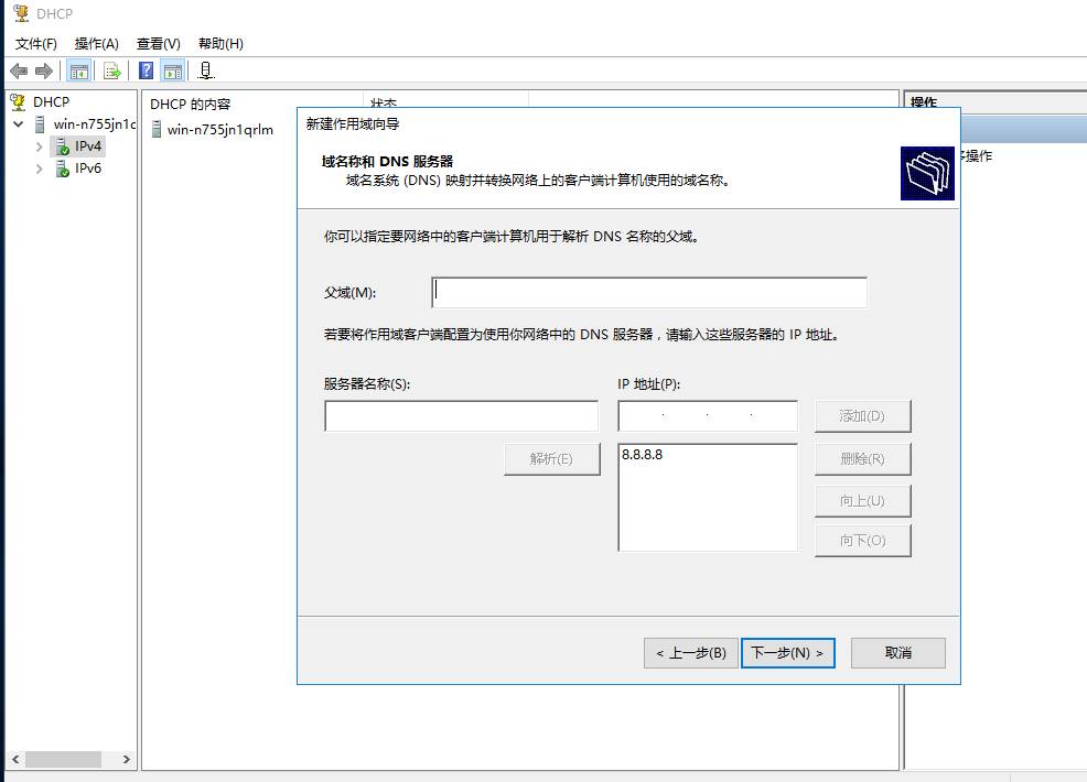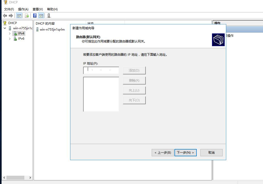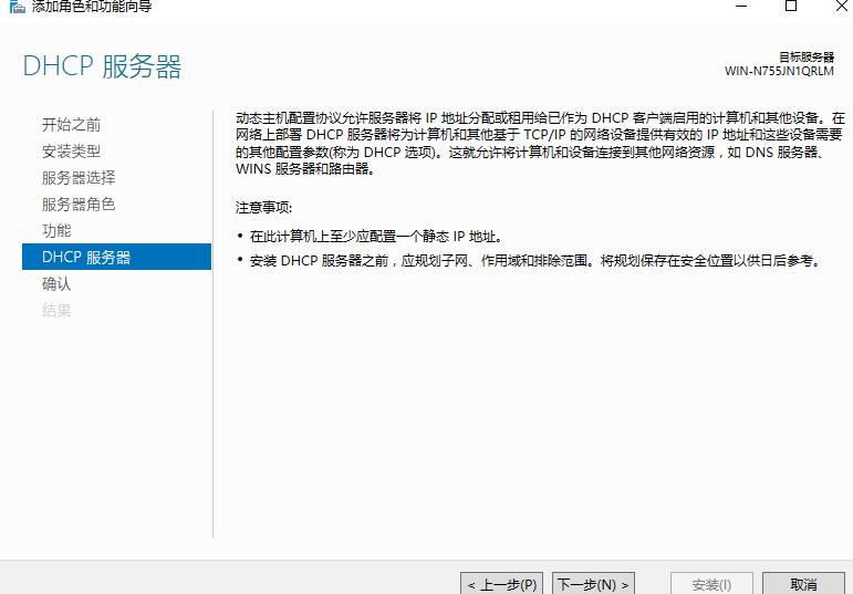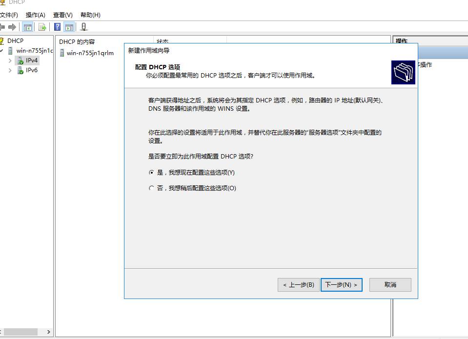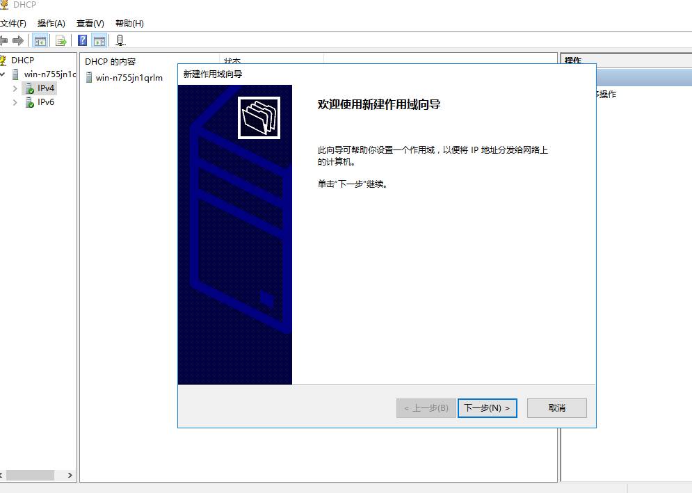 在此页面点击“DHCP服务器”然后下一步就会弹出来个窗口