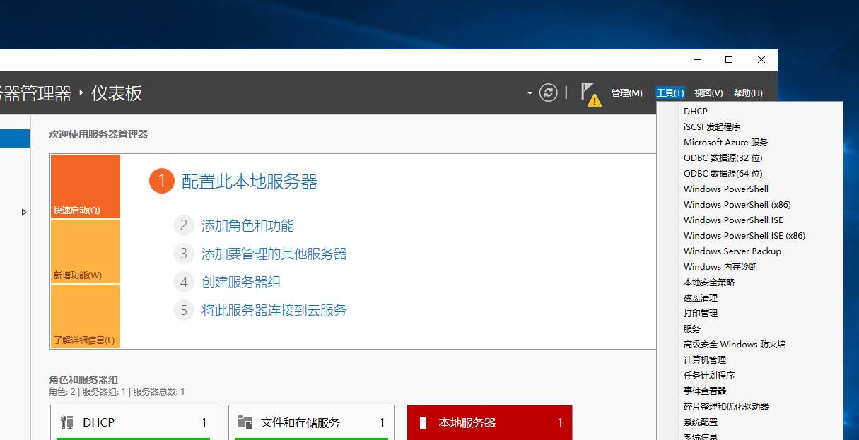 服务器管理的主界面 的右上方的工具中打开DHCP