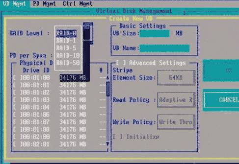 2. 等待一小会儿,系统自动进入虚拟磁盘管理器(Virtual Disk Management),准备开始配置RAID,如图2-2所示: