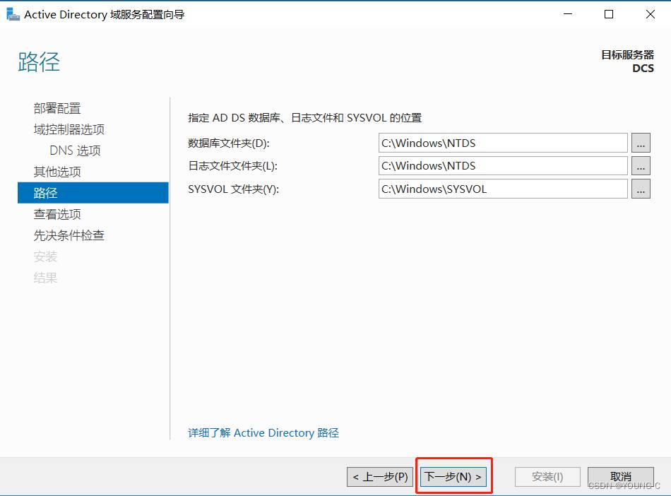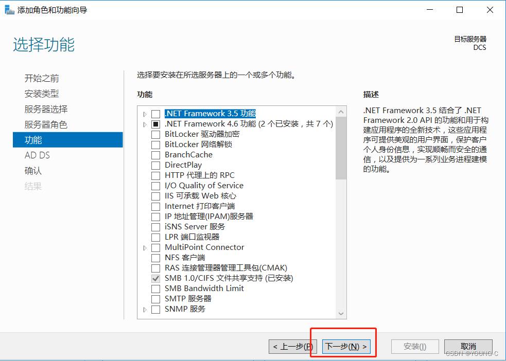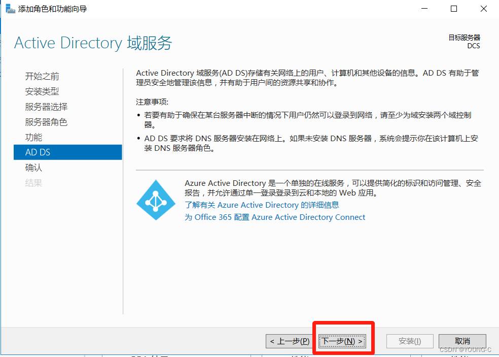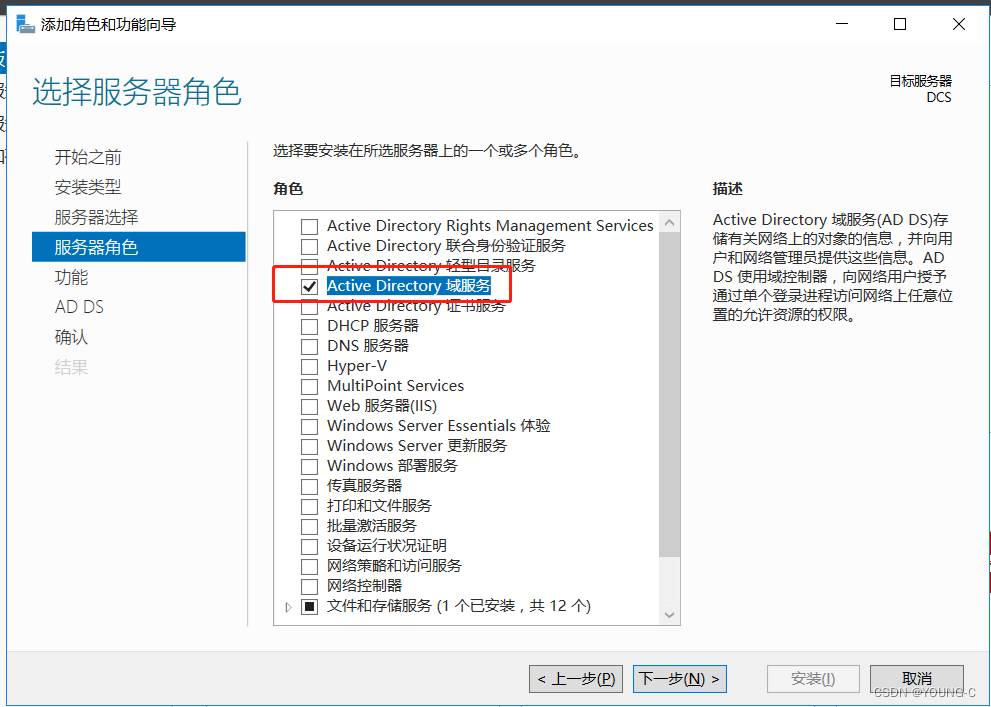 勾选 “ Active Directory 域服务 ” ,点击下一步