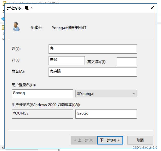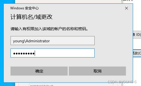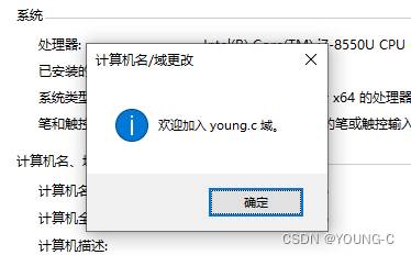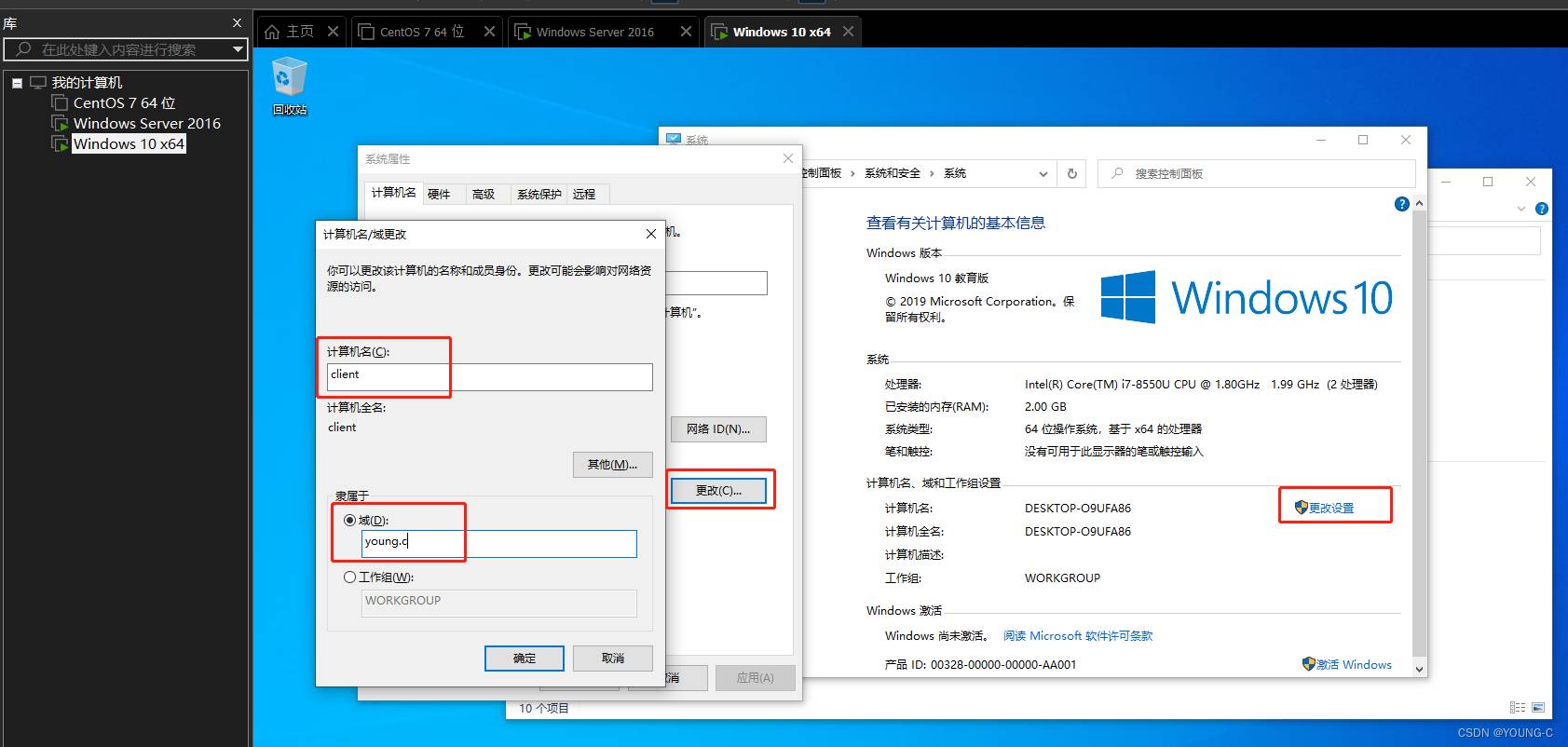 客户端关于本机—更改设置—更改—计算机名—域名—确定