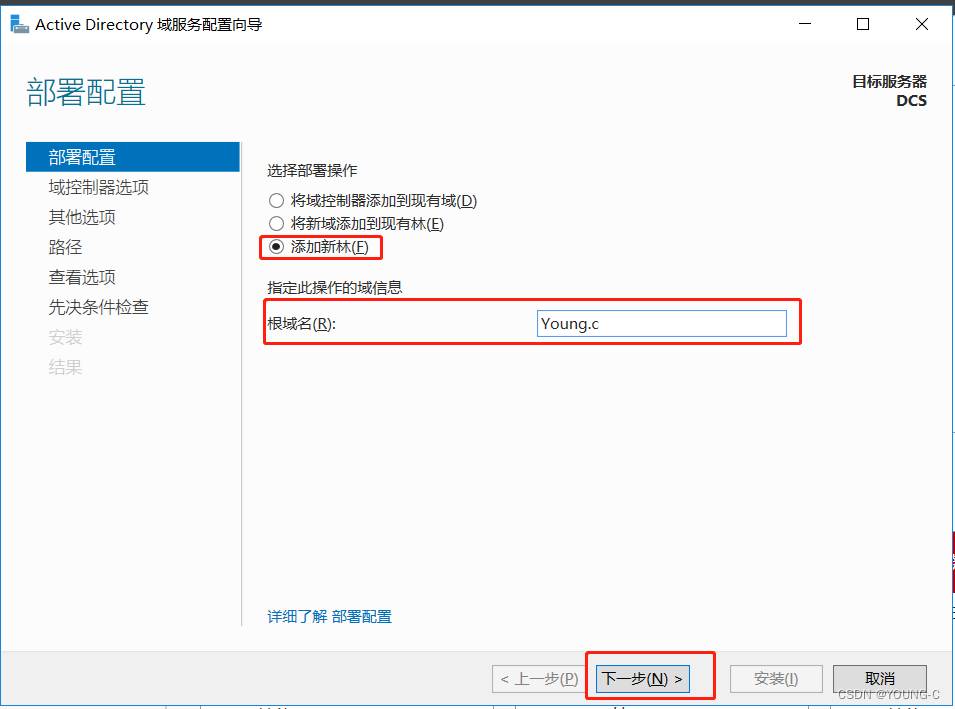 选择“ 添加新林 ” ,自定义根域名,然后下一步
