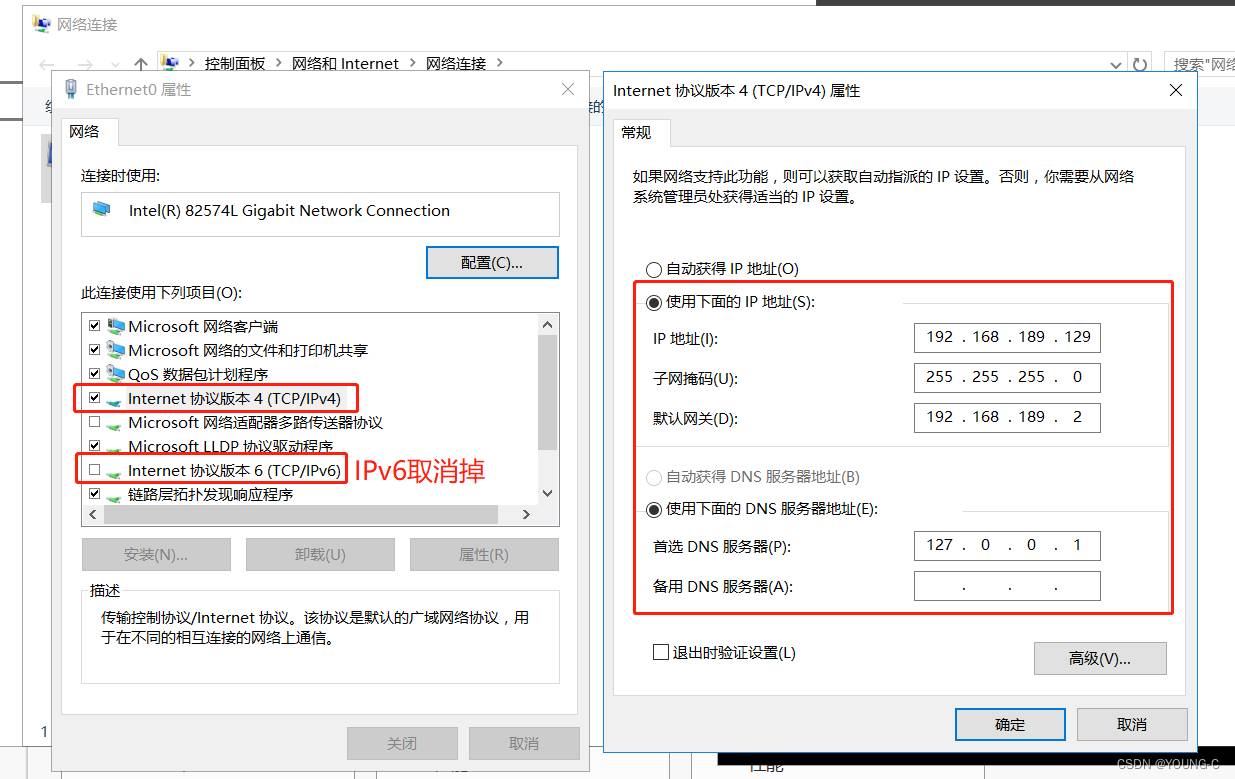 固定一个IP地址(最好把IPv6取消掉,可能影响到客户端加域)