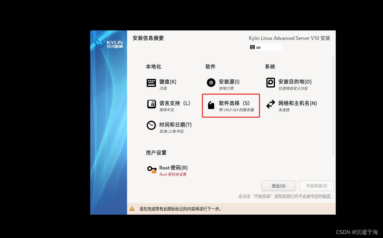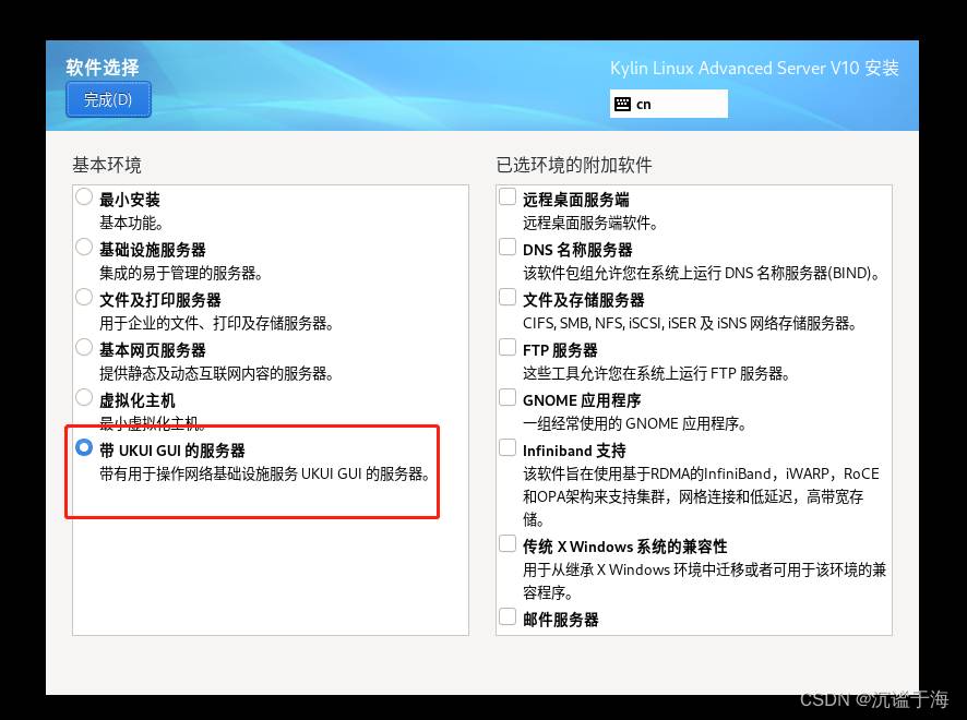 4.点击软件选择,默认是选中带图形化页面的服务器