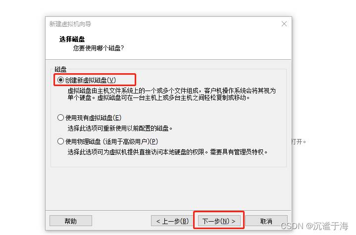9.选择磁盘:创建新虚拟磁盘;点击下一步