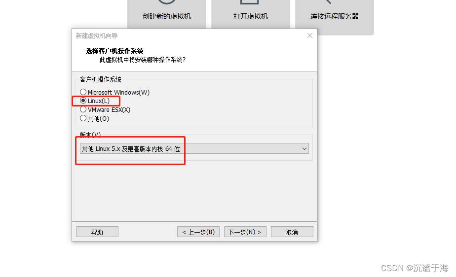 4.选择linux,选择版本为:其他Linux5.x及更高版本内核64位